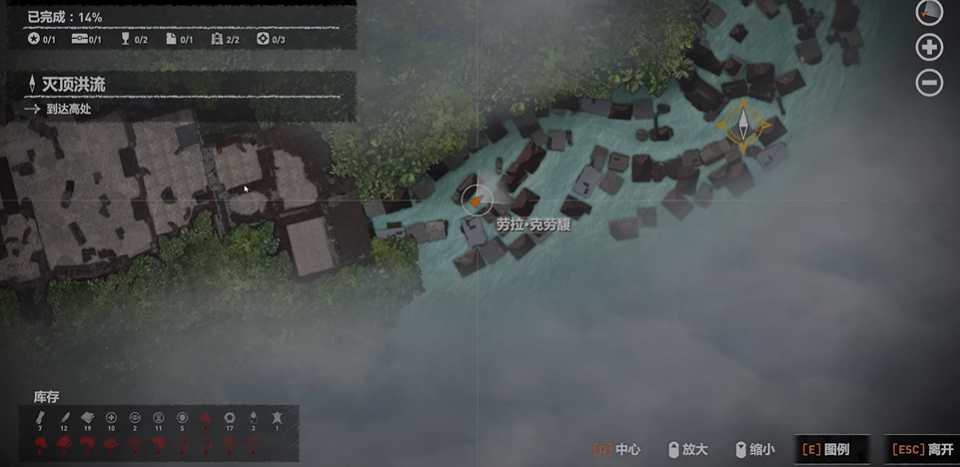 灭顶洪流关卡开始于劳拉被卷入洪水,此时需立即使用方向键左右控